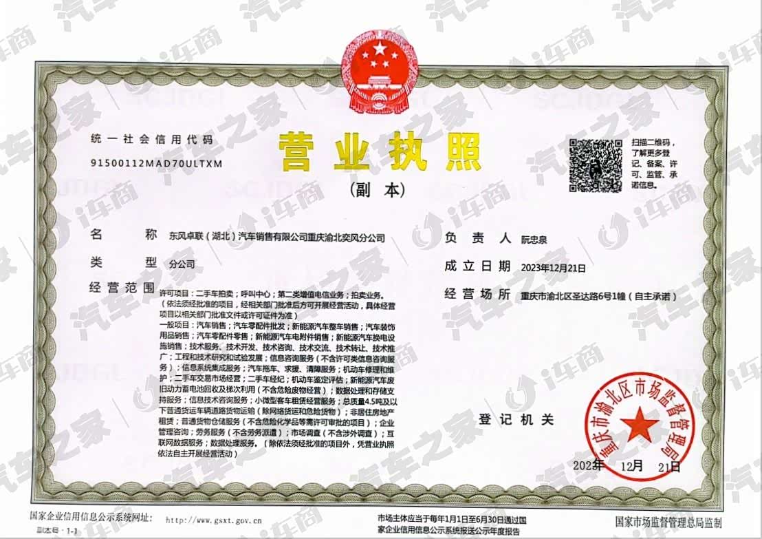 东风卓联(湖北)汽车销售有限公司重庆渝北奕风分公司