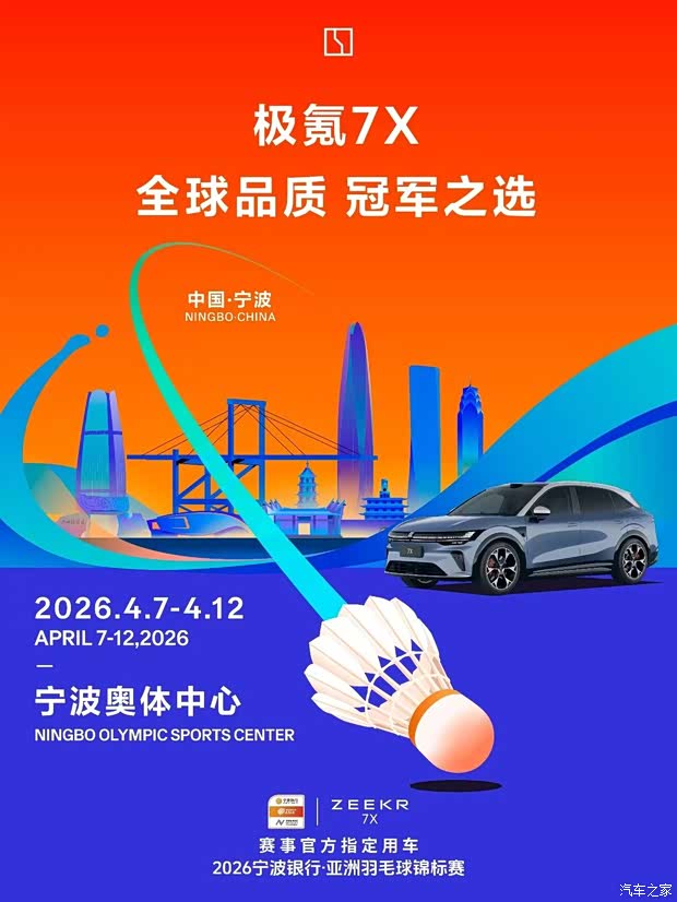 极氪7X正式官宣成为2026宁波银行・亚洲羽毛球锦标赛赛事官方指定用车