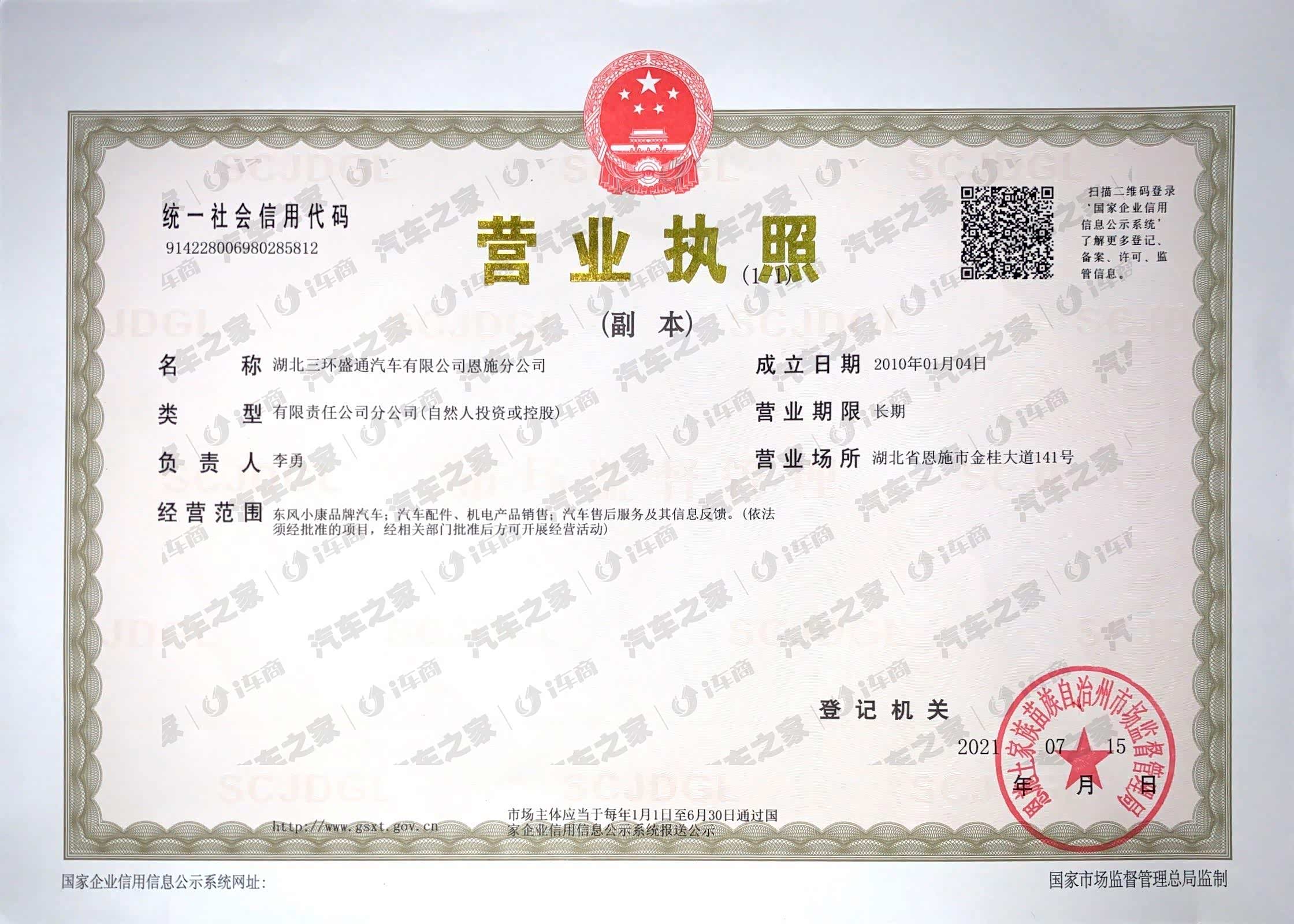 公司名称 |湖北三环盛通汽车有限公司恩施分公司 ,湖北三环盛通汽车有限公司恩施分公司隶属大型国有控股企业--三环集团,是一家专门从事汽车销售、服务的完全符合现代化企业制度规范要求的股份制上市公司,上市板块主要有三环股份和襄阳轴承,公司资金实力雄厚,拥有国际流行的4S专卖店,高素质的员工队伍和“形象 服务=品牌”的先进理念,并且率先在同行业通过IS09001国际质量体系认证。