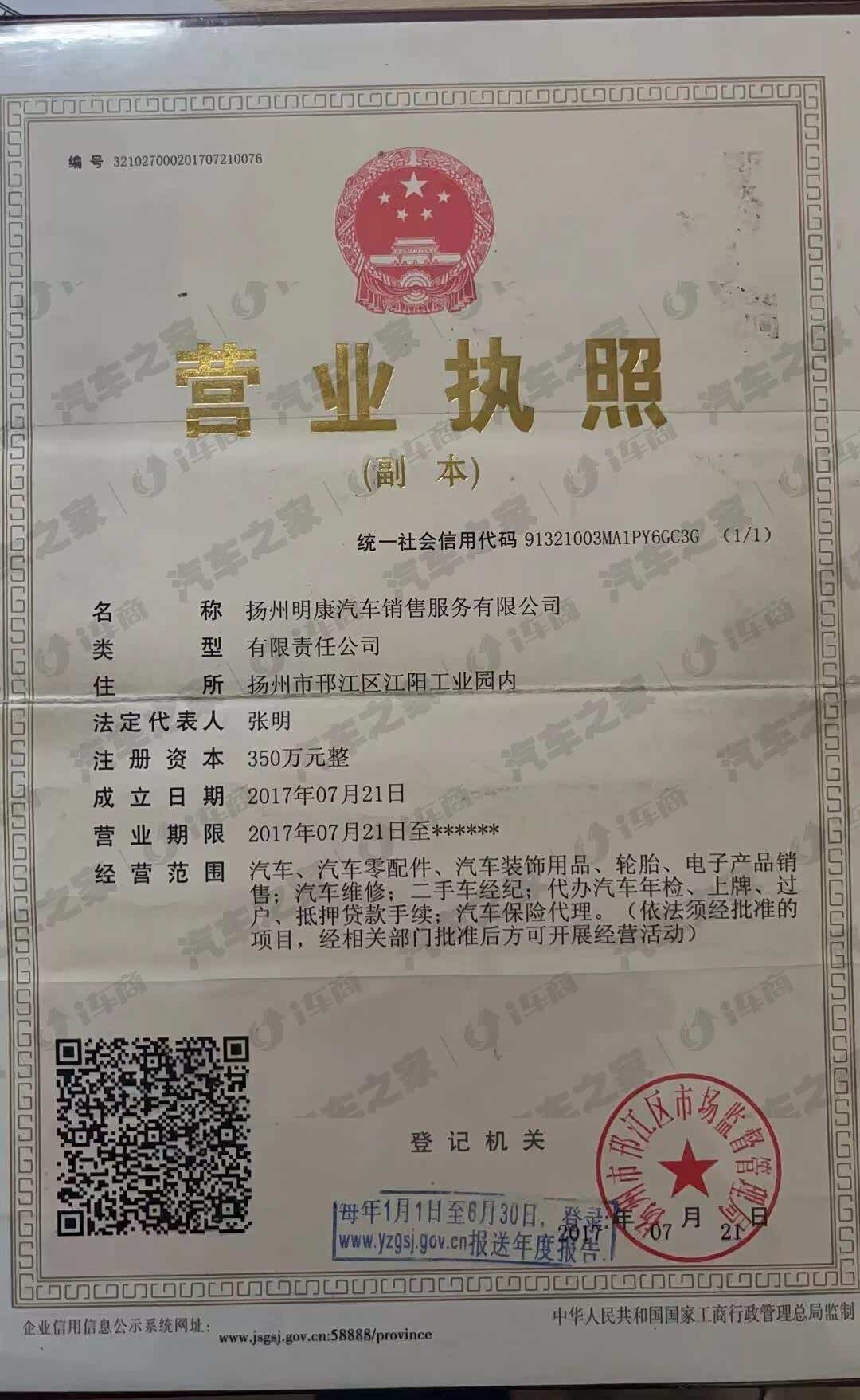 扬州明康汽车销售服务有限公司