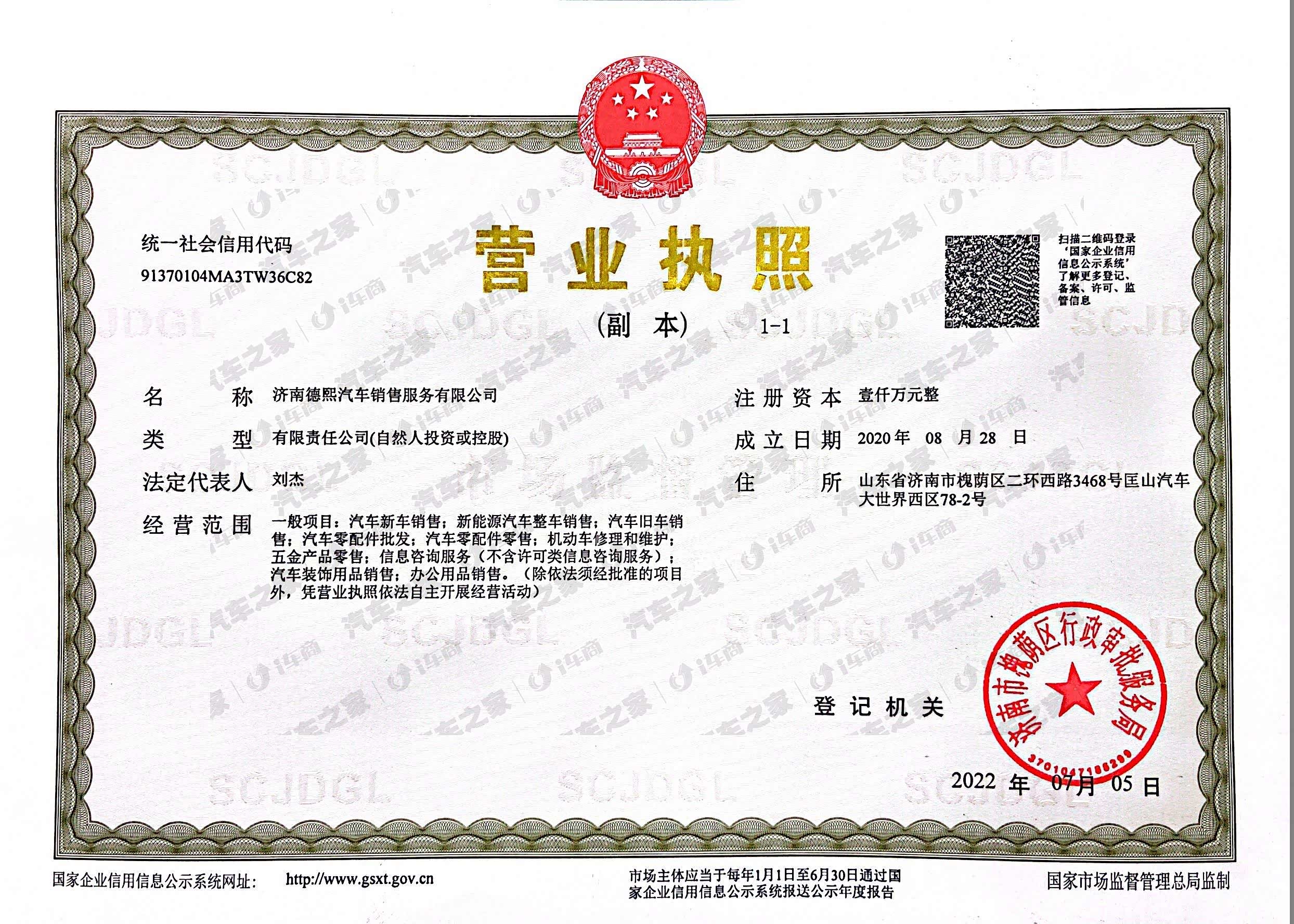 济南德熙汽车销售服务公司 — 首批授权一级经销商,十店老店。全国销量前5强, 全国十佳优异营销服务商,被评选为经营能力强,服务质量好,用户满意度高的经销商。