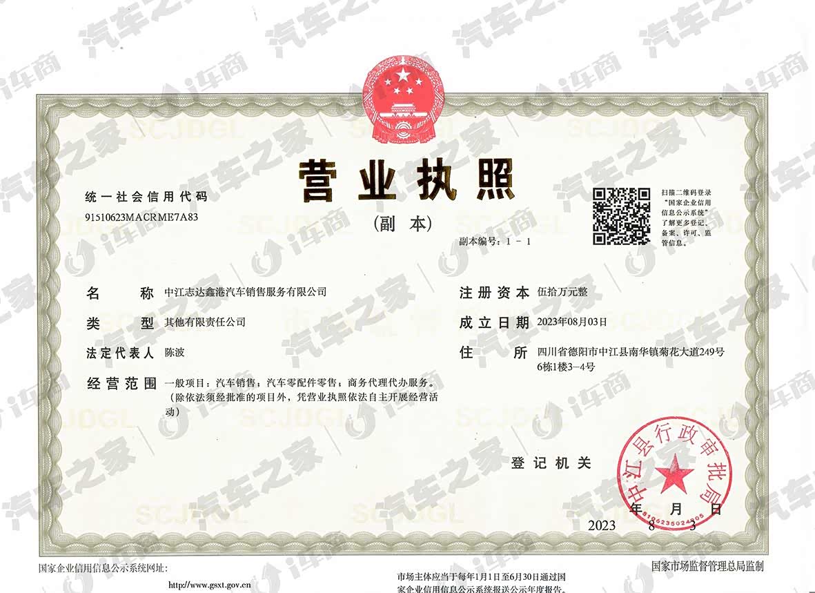 四川志达汽车销售服务有限公司,成立于2003年8月,是中江地区首家专业从事品牌汽车销售、售后维修保养、汽车配件供应、汽车装饰美容、二手汽车收购、销售、置换、汽车租赁、汽车金融服务、充电桩运营服务、代办汽车上、年审、过户和车购税缴纳、车辆保险、理赔一条龙服务,为一体的大型汽车综合服务线下平台。公司代理比亚迪、大众、本田、丰田、日产、别克、雪佛兰、现代、捷达、长安、长城哈佛、领克、红旗、荣威、广汽埃安等二十大热销品牌,集团旗下拥有大型品牌汽车量贩超市、志达鑫港比亚迪4s店、新能源汽车生活馆、城南绿谷旗舰店、长安汽车直营店、长城哈佛汽车直营店、新能源充电站、机动车登记服务站、二手车交易中心、售后保养维修服务中心、车友俱乐部等全方位汽车服务实体。集团总部位于中江高新区飞天桥头,经营面积达一万多平方米,公司成立20周年,始终秉承“买车一下子,服务一辈子”的客户服务理念,累计服务客户33883名,连年被政府授予“服务业先进企业”和“守合同重信用企业”,公司拥有一支专业化、规范化、诚实亲切、团结奋进、开拓创新的销售服务队伍,始终坚持以最优惠的价格和最完美的服务,实现客户价值最大化,致力打造中江汽车销售服务第一品牌!