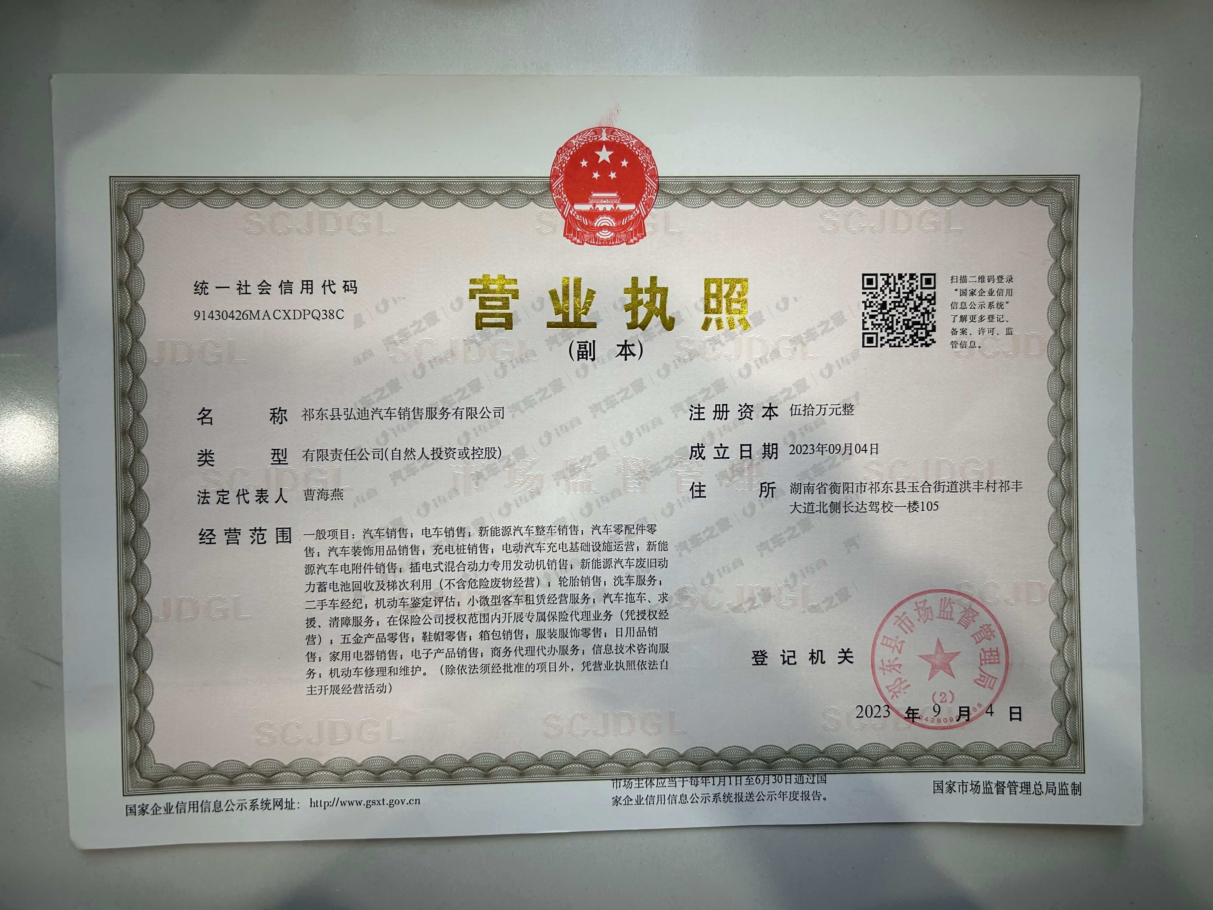 祁东弘迪位于湖南省祁东县祁丰大道101号长达驾校旁,是祁东县第一家得到比亚迪集团官方授权的王朝网车系城展店,负责汉、唐、秦、宋、元整车和零配件销售服务。公司力求最大限度满足客户需求,全心全意为客户提供高品质的服务;做到在常宁本地即可享受线下买车、试乘试驾等服务