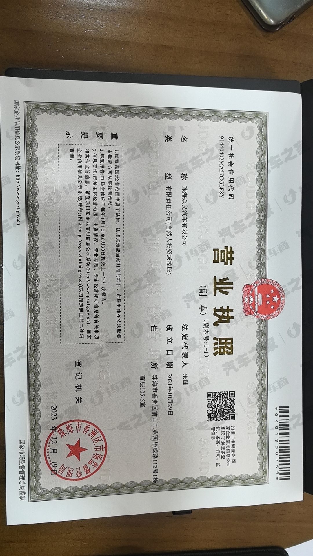 营业执照: