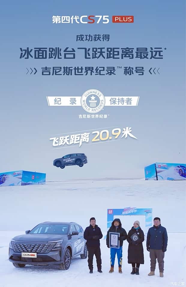 第四代CS75PLUS创吉尼斯世界纪录,印证长安汽车非凡品质2026年1月,第四代CS75PLUS在央视与吉尼斯世界纪录官方联合认证下,于零下 30℃极寒环境,成功飞跃20.9米,创下“冰面跳台飞跃距离最远”吉尼斯世界纪录。这场极限挑战,已彻底超越对传统机械素质的检验,是对车辆在极滑界面上整体电控与动力协同智慧的严苛命题。底盘强度,铸就无畏落地瞬间。第四代CS75PLUS的底气,源于其获得“中国十佳车身”荣誉的方舟笼超高强度安全车身。基于全球化严苛标准打造的方舟架构平台,在A柱、B柱等关键承力部位应用1500MPa热成型超高强度钢,强度达到普通钢材的5倍。结合5纵5横一体式立体安全架构,冲击能量能够被迅速分散导引。与此同时,车辆的悬架系统被赋予兼融“硬支撑”与“软缓冲”的智能特性,在飞跃落地的瞬间,有效吸收并衰减巨大冲击力,确保极限着陆过程中车身不变形、不松散,以“落地即稳”的表现诠释了工程可靠性。性能稳定,征服低附着极限路况。面对冰面极限低附着路况,第四代CS75PLUS凭借“天枢智能”全域安全系统的智慧赋能,实现了ESC电子稳定控制、TCS牵引力控制、动力单元及底盘调校的高效协同。系统针对冰面特性专项优化,实时监测车辆动态,精准控制各车轮制动力,确保动力得以高效、平稳输出,实现“稳而不肉”的起步加速,彰显出“雪中从容”的操控底蕴,为极限操控提供了坚实保障。从腾空到着陆,每一寸底盘设计都承载着工程师的严谨。长安CS75PLUS以扎实的机械素质与可靠的性能表现,让极限纪录成为安全与稳定的注脚。这不仅是技术的胜利,更是每一位用户安心驰骋的底气。这并非一场“特技秀”,而是中国汽车工业以扎实技术、可靠品质,在全球权威舞台上完成的又一次实力亮相,印证了“中国智造”在整车安全与性能领域的卓越进步。底盘强,才敢纵身一跃;性能稳,方能雪中笃行。标题示例: