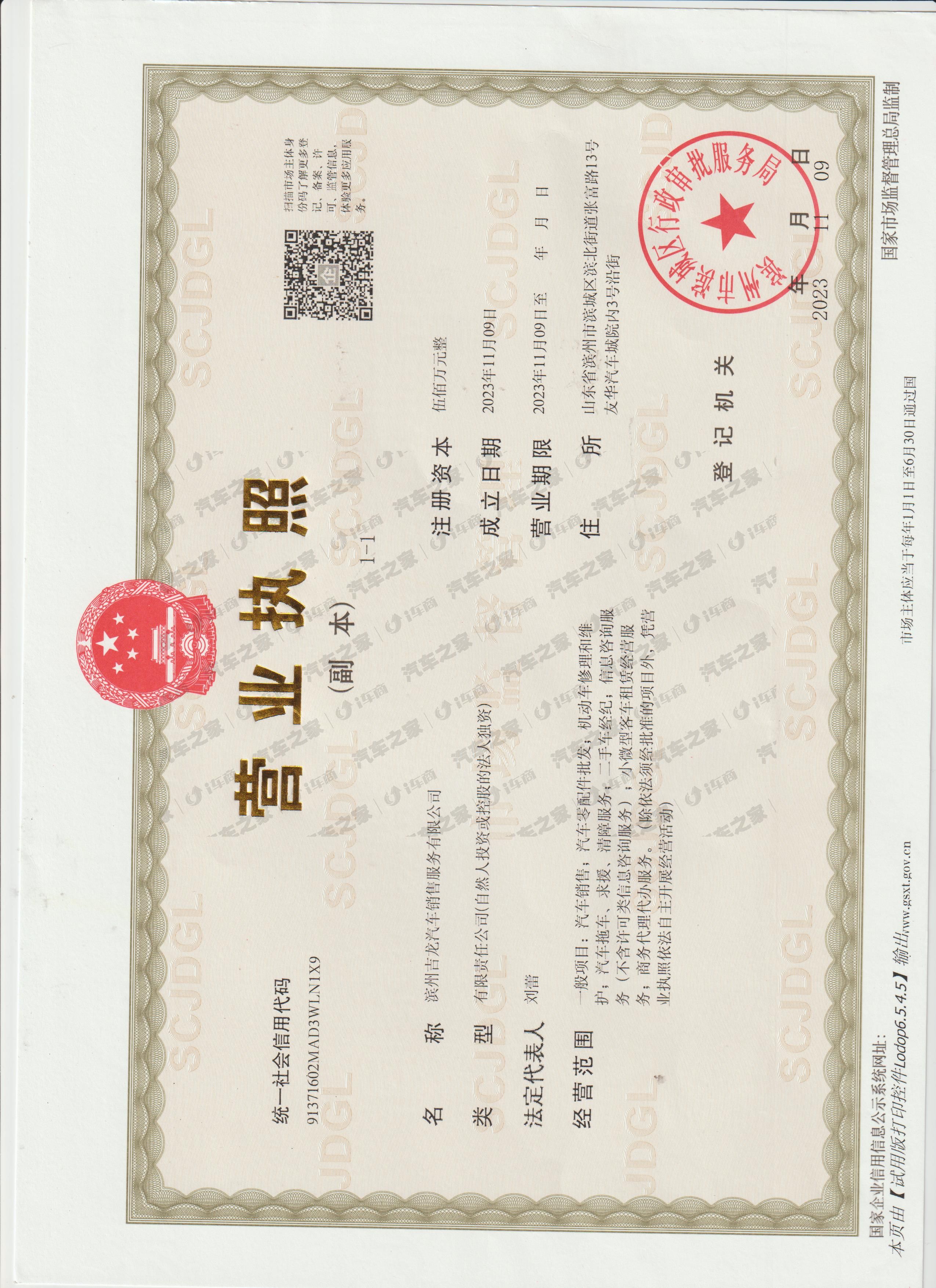 滨州吉龙汽车销售服务有限公司