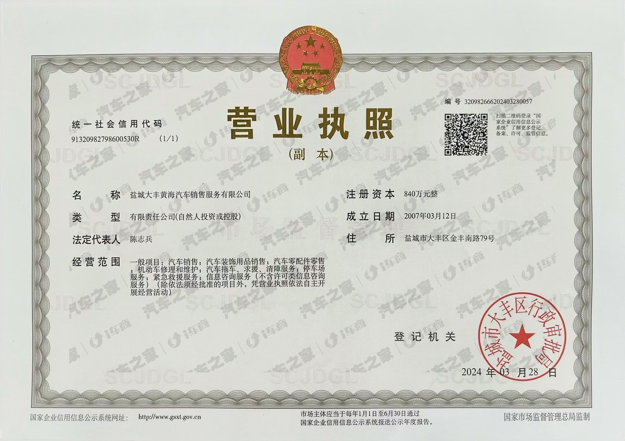 江苏省盐城市大丰区大中街道金丰南大街盐城大丰黄海汽车销售服务有限公司