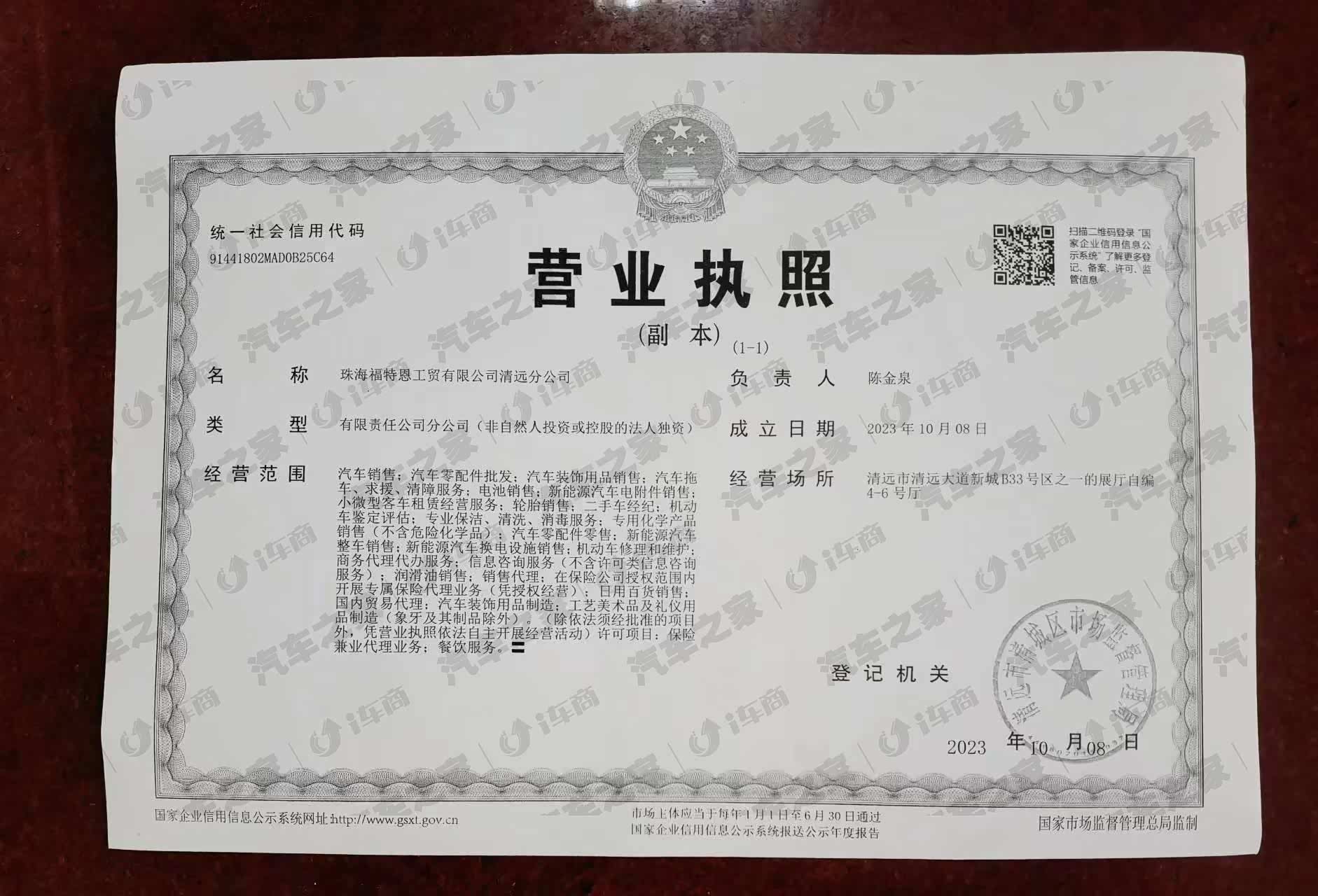 珠海福特恩工贸有限公司清远分公司