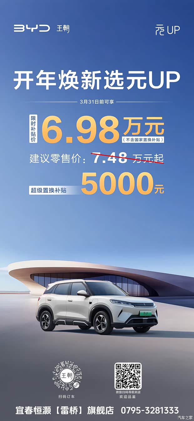 春风不等人,好礼亦有时。这场集结了国家红利、厂家诚意、金融便利与智驾承诺的开年盛宴,只为让你在这个春天,轻松开启属于比亚迪王朝的崭新旅程。详情请咨询比亚迪王朝授权经销商,让梦想座驾,伴你一路生花。