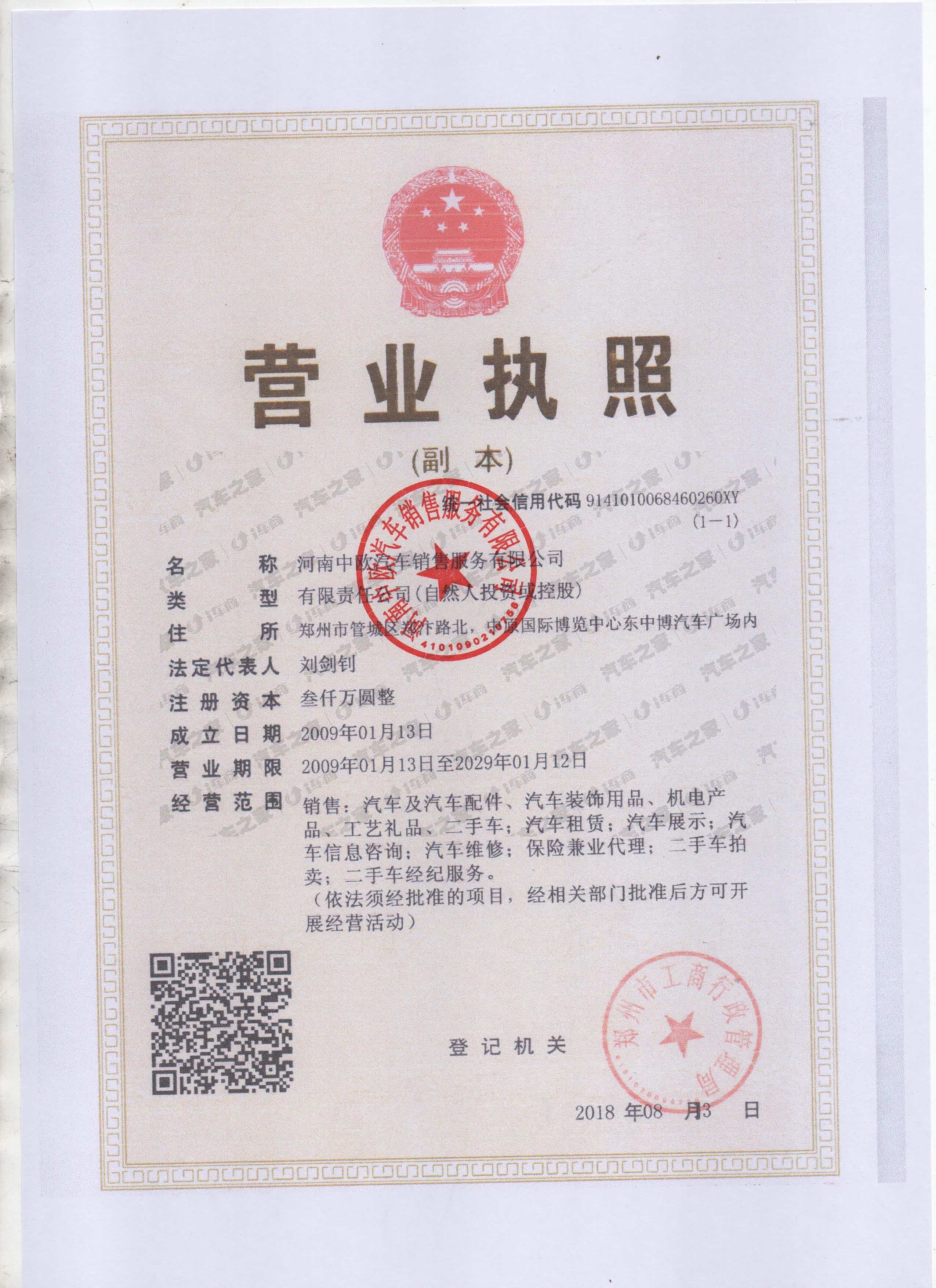 河南中欧汽车销售服务有限公司