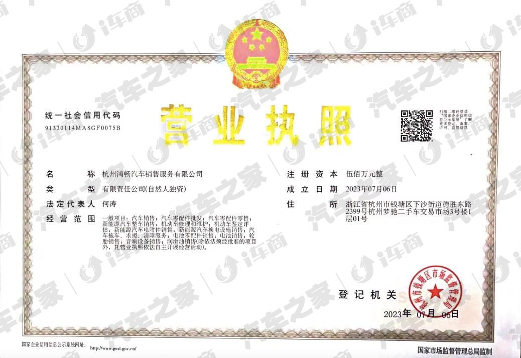 浙江省杭州市钱塘区下沙街道德胜东路2399号杭州梦驰二手车交易市场3号楼1层01号