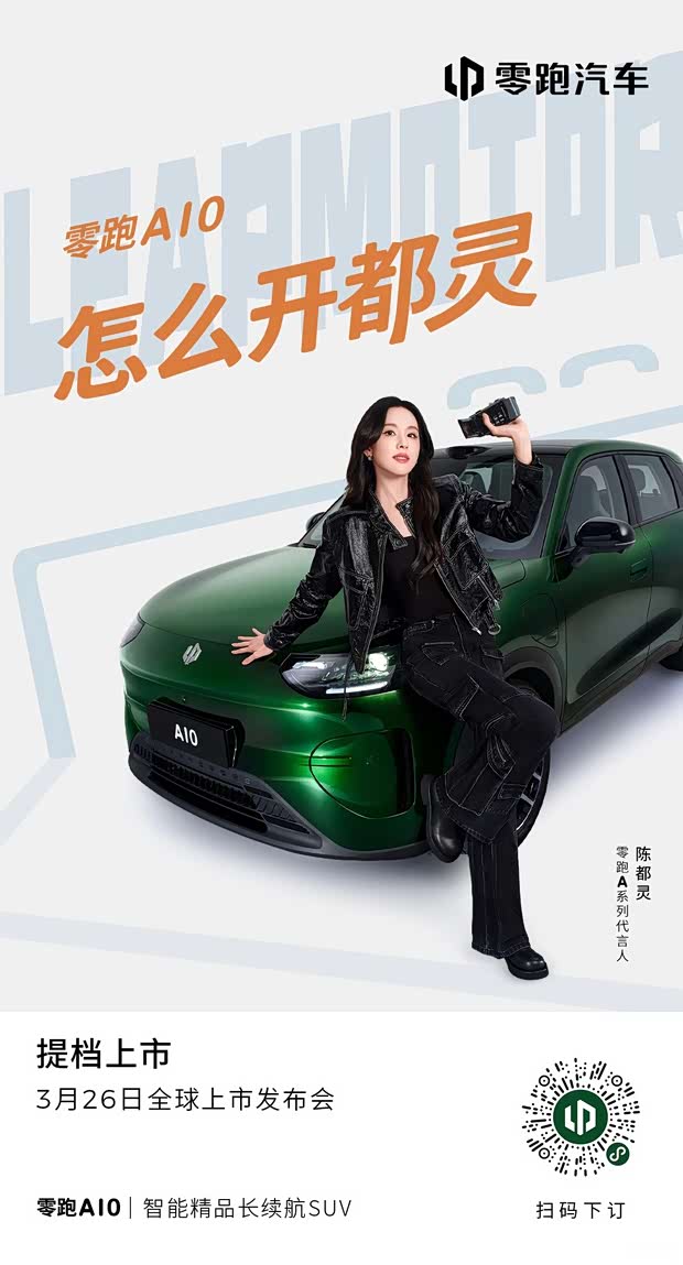 颜值出众,实力越级,怎么开都灵! 嘟嘟,陈都灵邀你和零跑A10一起 开启智趣随行的灵感之旅! 零跑A10提档上市,3月26日全球上市发布会,敬请期待! 盲订进行时,99元即可锁定限时权益 #零跑A10怎么开都灵 #零跑A系列代言人陈都灵 #零跑A10
