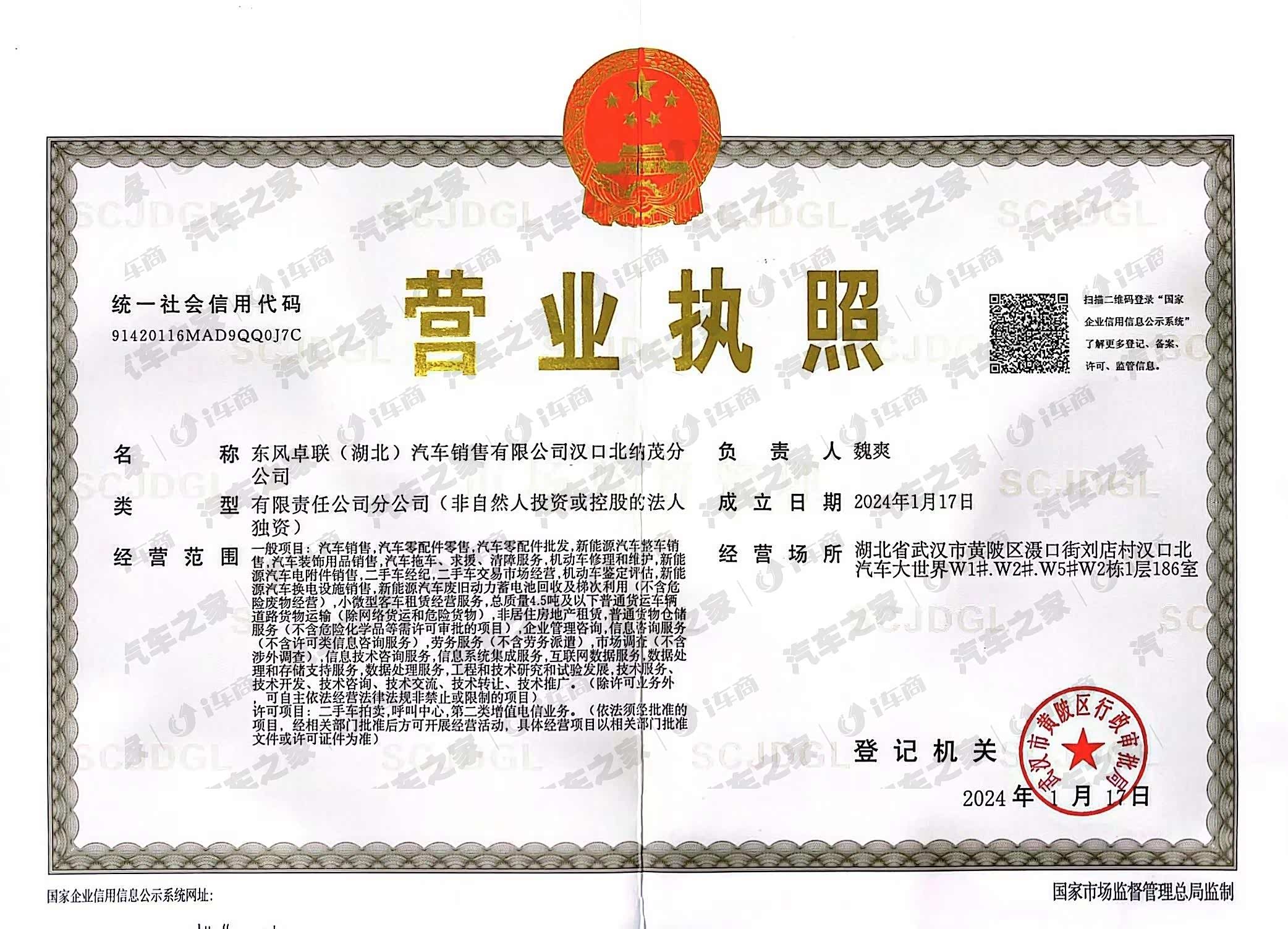 东风卓联(湖北)汽车销售有限公司汉口北纳茂分公司