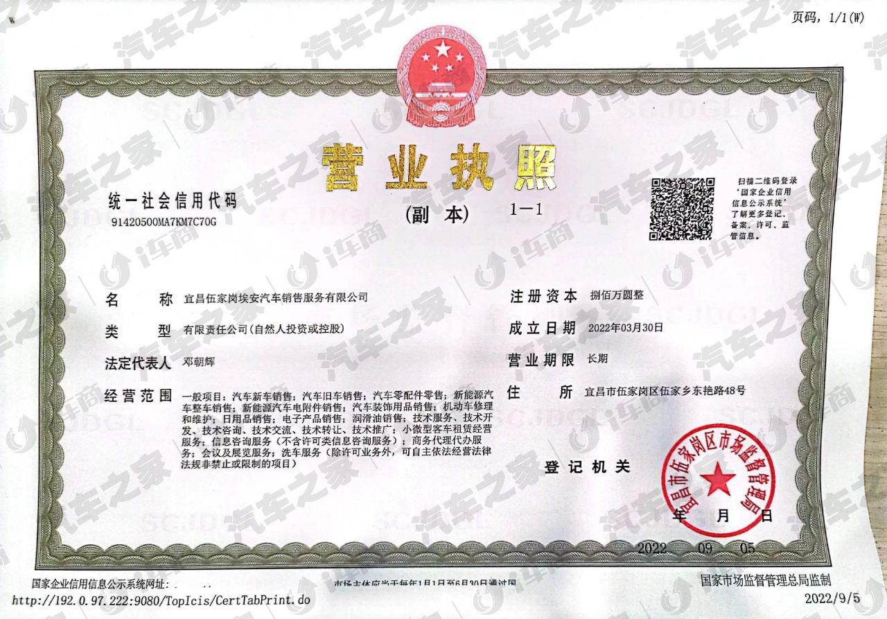 宜昌伍家岗埃安汽车销售服务有限公司