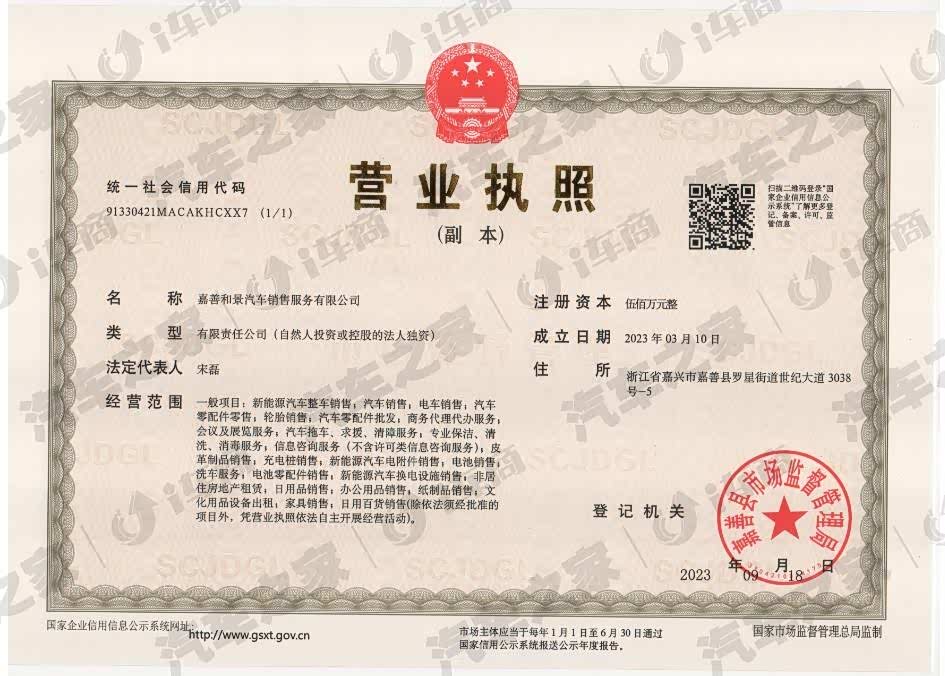 浙江省嘉兴市嘉善县世纪大道3038号-5嘉善和景汽车销售服务有限公司