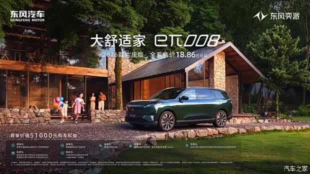定位“大舒适家”的eπ008,在2025年凭借越级体验稳坐15-20万级新能源中大型SUV阵营,圈粉众多家庭用户,彰显了其在产品安全与舒适层面的卓越实力。针对家庭用户对购车成本与用车保障的双重关注,eπ008量身打造了贴心解决方案。其中,2026款六座版尊享价值51000元购车权益,全系售价18.86万元起;2026款eπ008五座版限时焕新指导价15.99万元起,尊享价值50000元购车权益,不仅减轻家庭购车压力,也让更多家庭能够安心享受高品质的新能源出行体验。