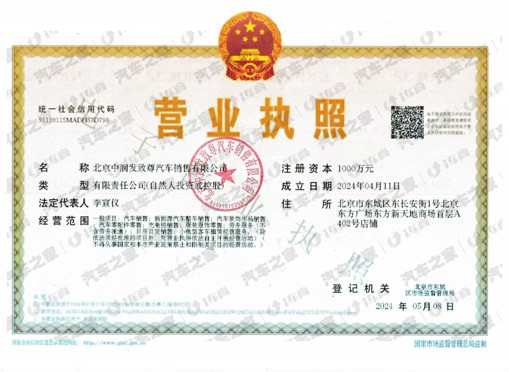北京中润发致尊汽车销售有限公司