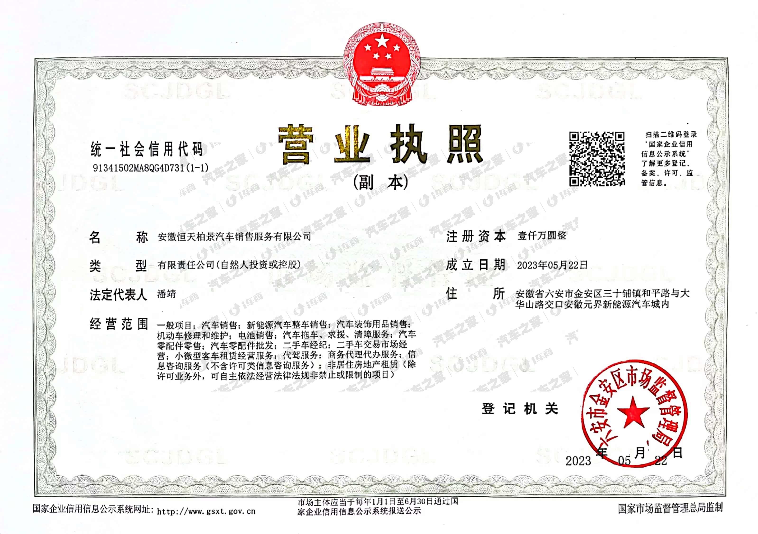 安徽恒天柏景汽车销售服务有限公司