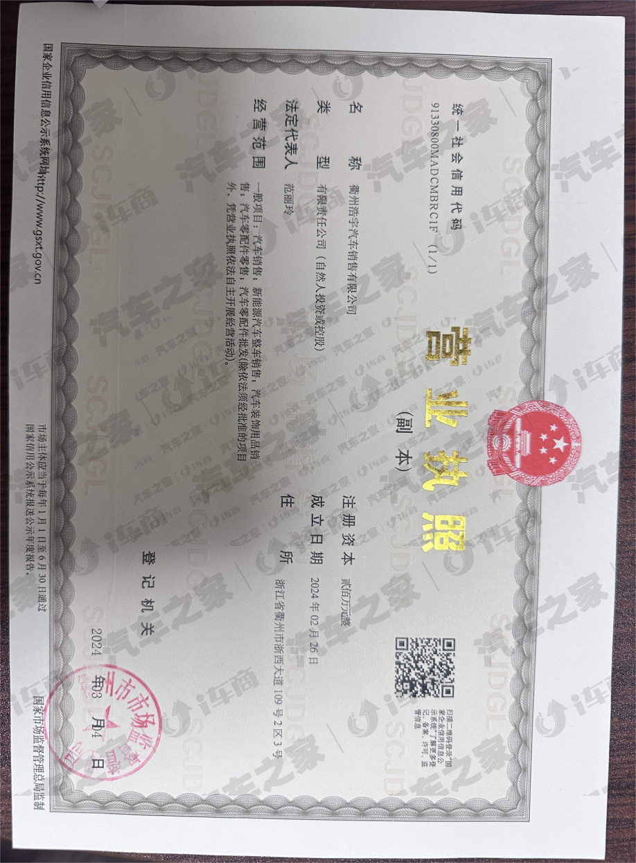 衢州浩宇汽车销售有限公司