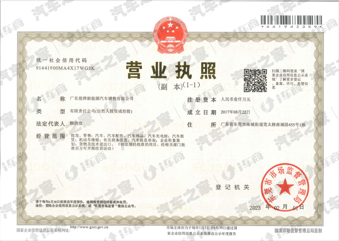 广东煌烨新能源汽车销售有限公司