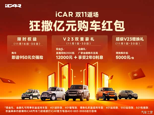 近日,本店内有iCAR 超级V23销售,颜色可选,目前购车部分车型可优惠0.00万元,感兴趣的朋友可以到店咨询购买,详情见下表: