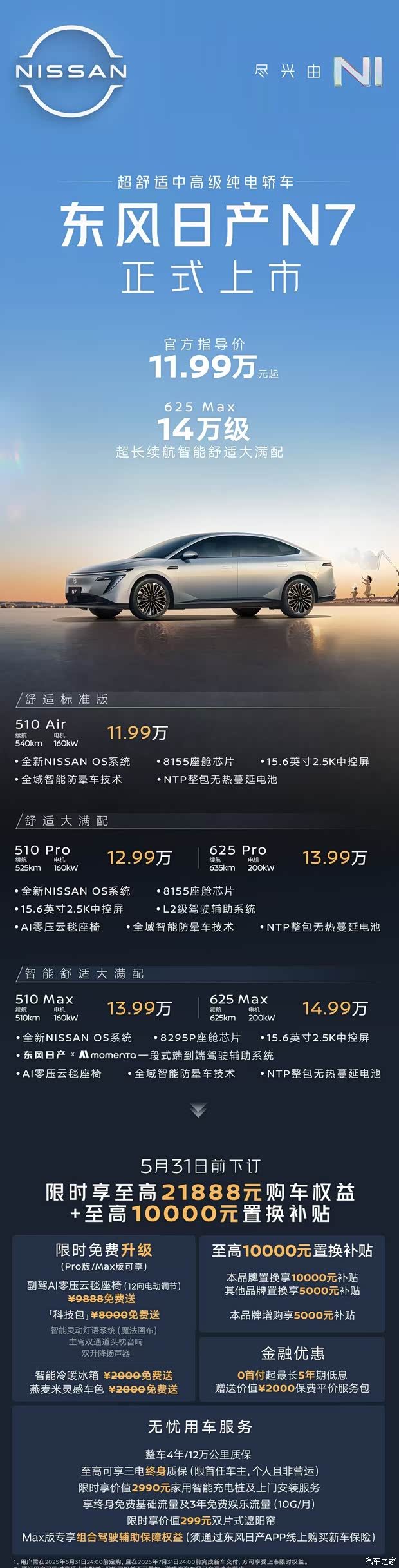 日产N7正式上市 11.99万起