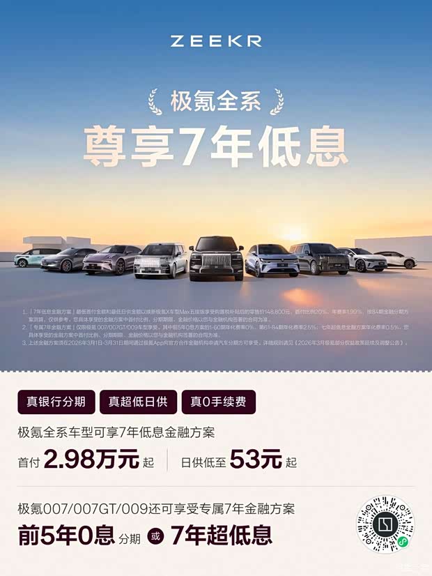 今年2月,极氪新车交付量达23,867辆,实现同环比双增长,同比劲增70%,逆势领跑中国豪华新能源汽车市场。 为感恩用户支持,当前购买极氪全系车型,消费者可享7年低息金融方案,用更划算的方式,解锁新能源豪华体验。
