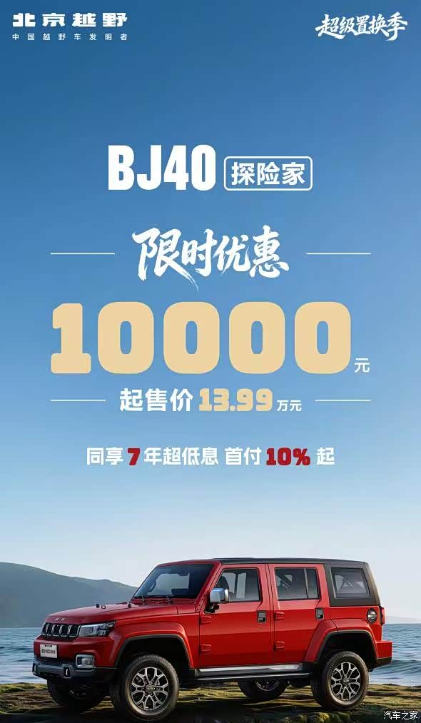 此外,北京越野还为BJ40增程赤兔版和BJ40探险家推出了专属优惠福利。北京越野老车主推荐购买BJ40增程赤兔版,可获得6000元奖励,这不仅是对老车主忠诚度的回馈,更将“省钱”的机会从购车者延伸到了推荐者身上;BJ40探险家限时优惠10000元,起售价13.99万元。直降优惠让这款车型以更具竞争力的价格进入更多消费者的视野,省了多少一目了然。