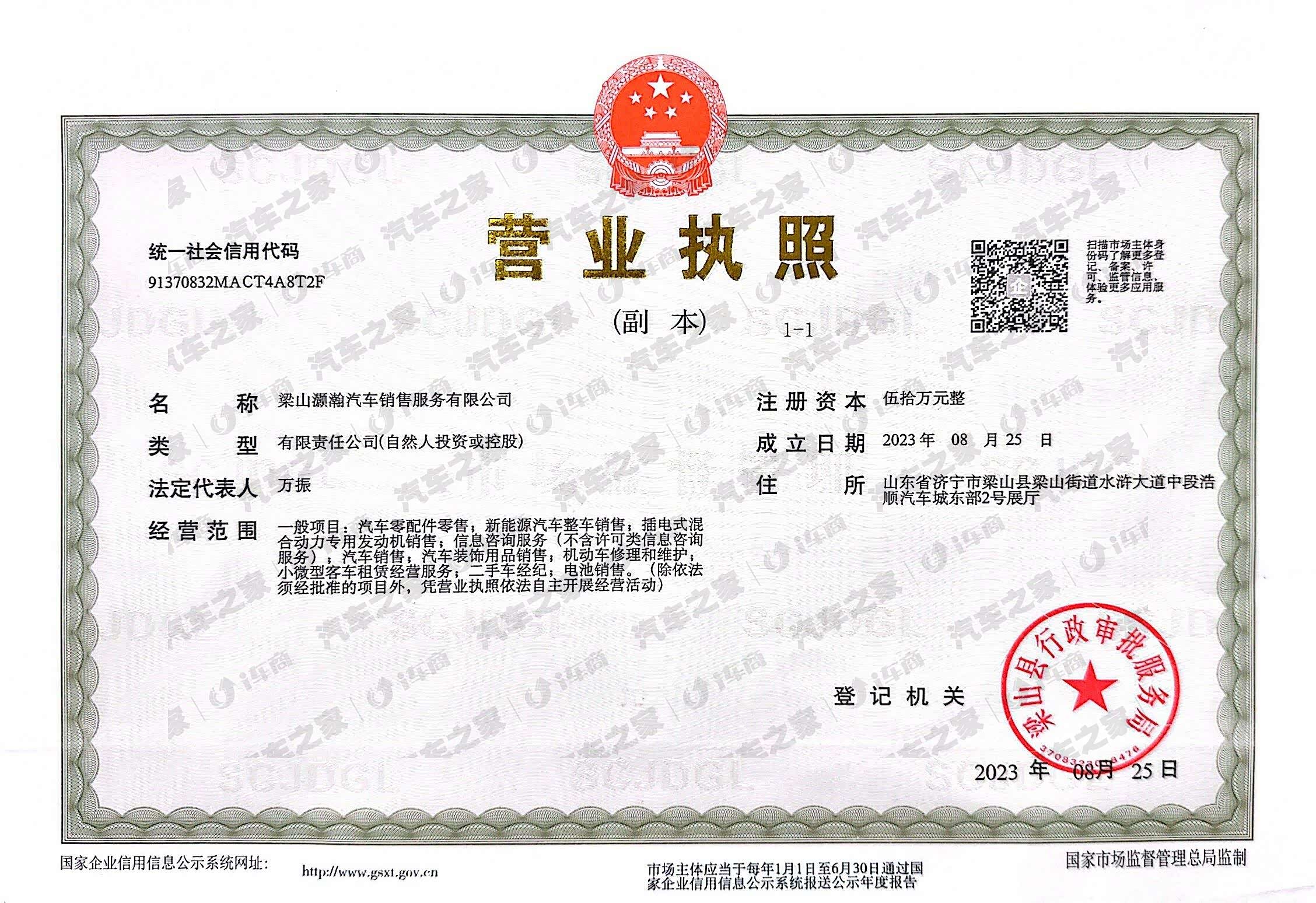 梁山灏瀚汽车销售服务有限公司