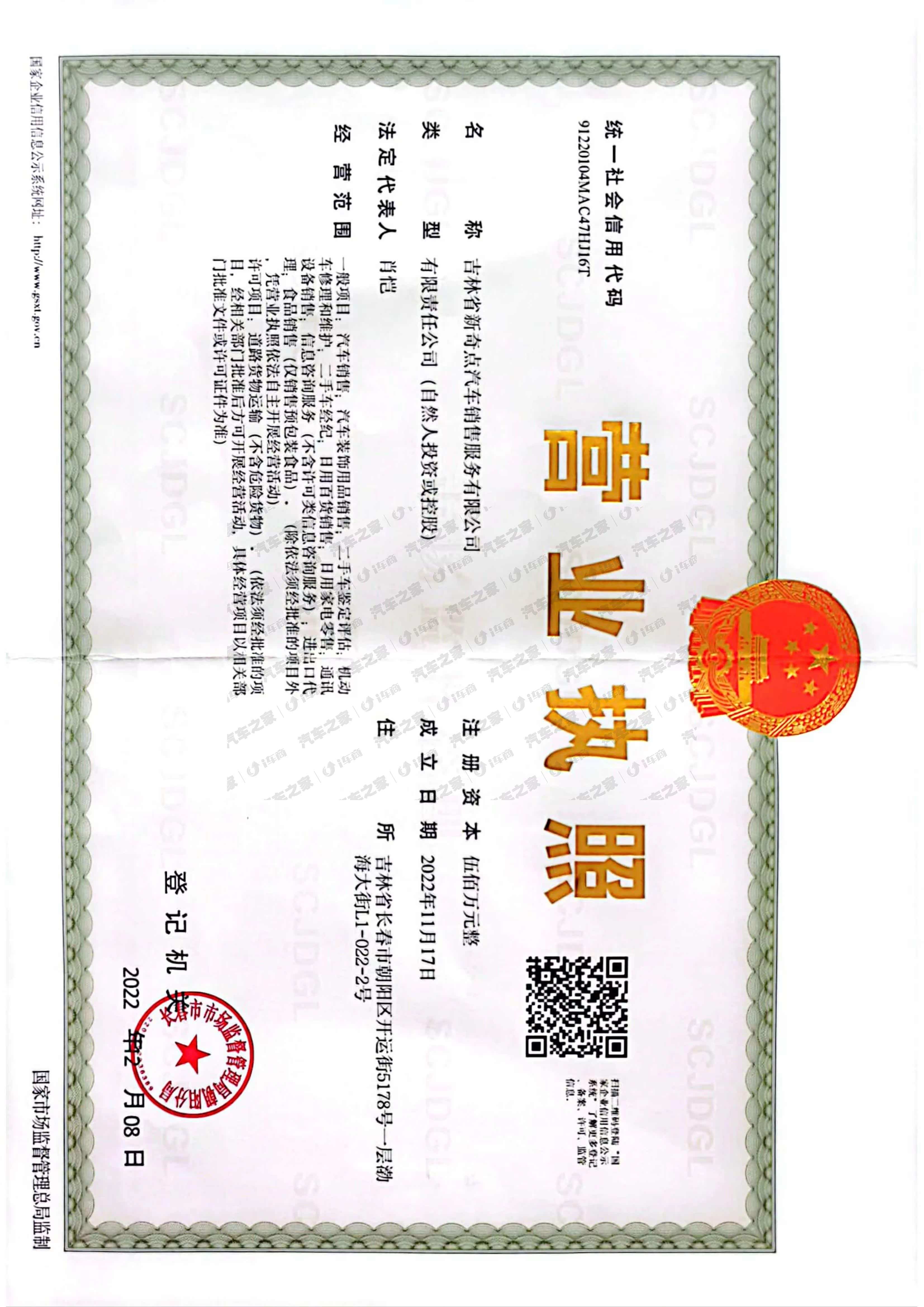 吉林省新奇点汽车销售服务有限公司成立于2022年,注册资本500万元。是一家着力于新能源汽车品牌销售、售后维修及其衍生服务为一体的企业,专注于提升车主的全生命周期体验。
