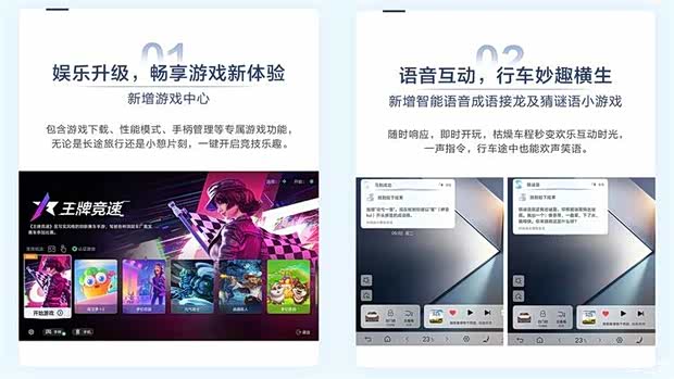 本次升级覆盖多个功能模块,其中最引人注目的是全新引入的“游戏中心”。它整合了游戏下载、性能模式切换和手柄管理的完整娱乐解决方案,显著拓展了车辆驻车场景下的使用可能。与此同时,智能语音系统也新增了成语接龙和猜谜语两项小游戏,在语义理解与交互趣味性方面进一步探索,让语音助手从工具逐步转向伙伴。