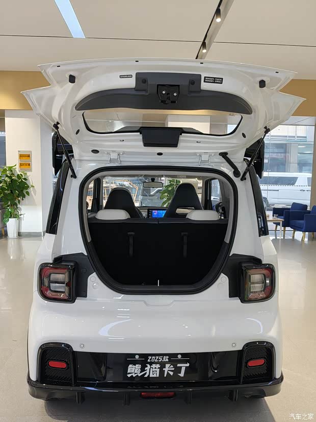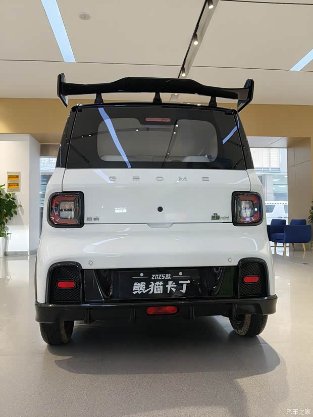 选车先看脸,白色熊猫卡丁的颜值堪称"移动吸睛机"。方盒子车身搭配纯净的"冒险白"涂装,像从动画里开出来的卡通座驾,阳光下自带柔光滤镜 。最妙的是原厂自带的运动套件:音速飞行尾翼翘在车尾像小翅膀,14英寸疾速拼色轮毂与白色车身撞出层次感,再加上风速宽体前后保,萌中带飒的气质让路人忍不住回头拍视频。充电口藏在车头盖板下,快充时低头"喝水"的模样,连充电桩旁的大爷都夸"这小车真秀气"。