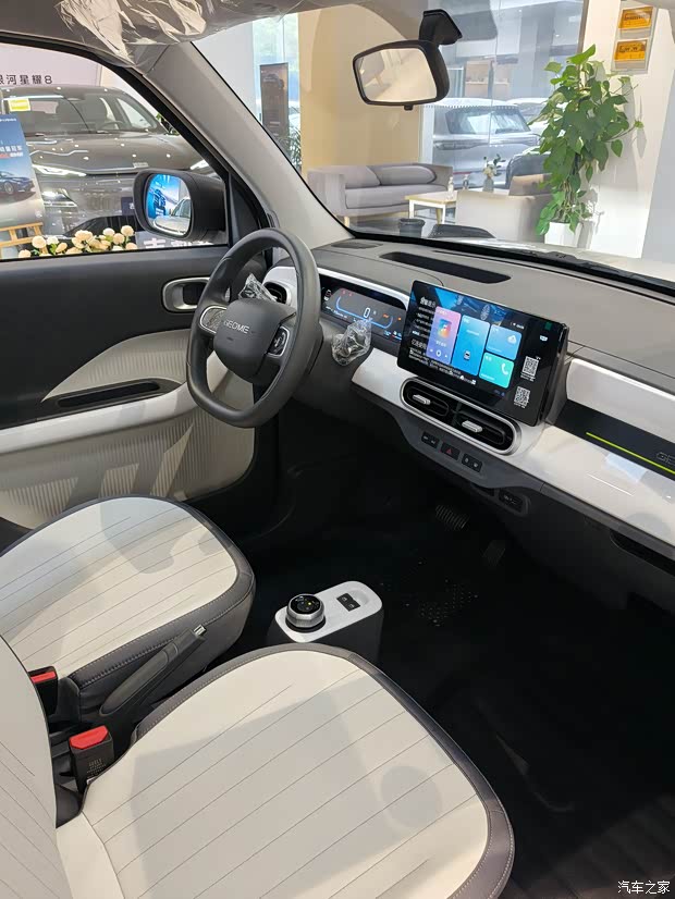 别被萌外表骗了,它骨子里藏着卡丁车的灵魂。后置后驱的布局让起步特别轻快,30千瓦电机一脚下去几乎没有延迟,绿灯亮起时总能先一步窜出去,像条灵活的小鱼穿梭在车流里 。4米的超小转弯半径更是神技,小区里的狭窄过道一把就能掉头,商场停车场的边角车位,别人犹豫半天,你轻松一倒就停好,成就感直接拉满。