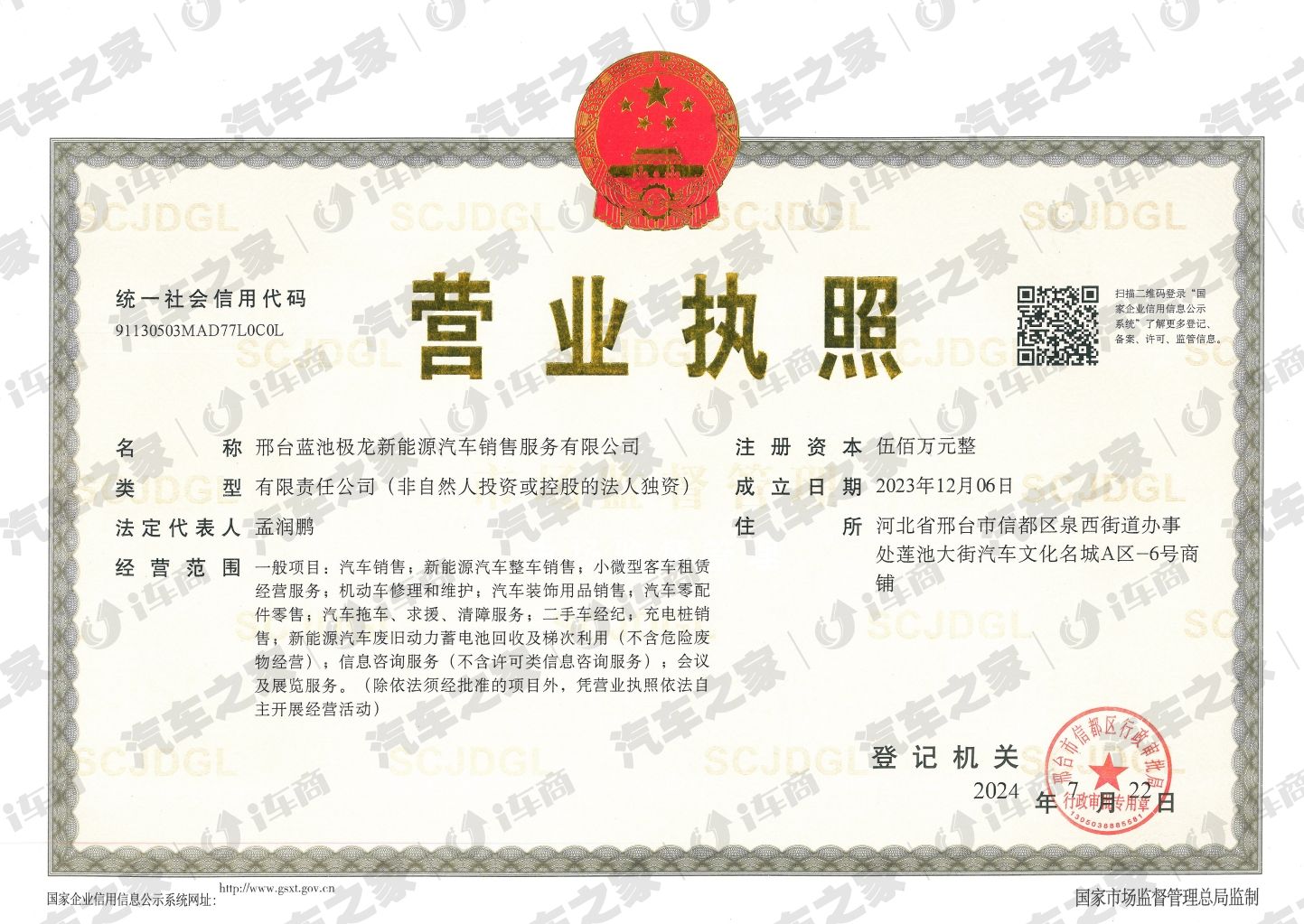 邢台蓝池极龙新能源汽车销售服务有限公司