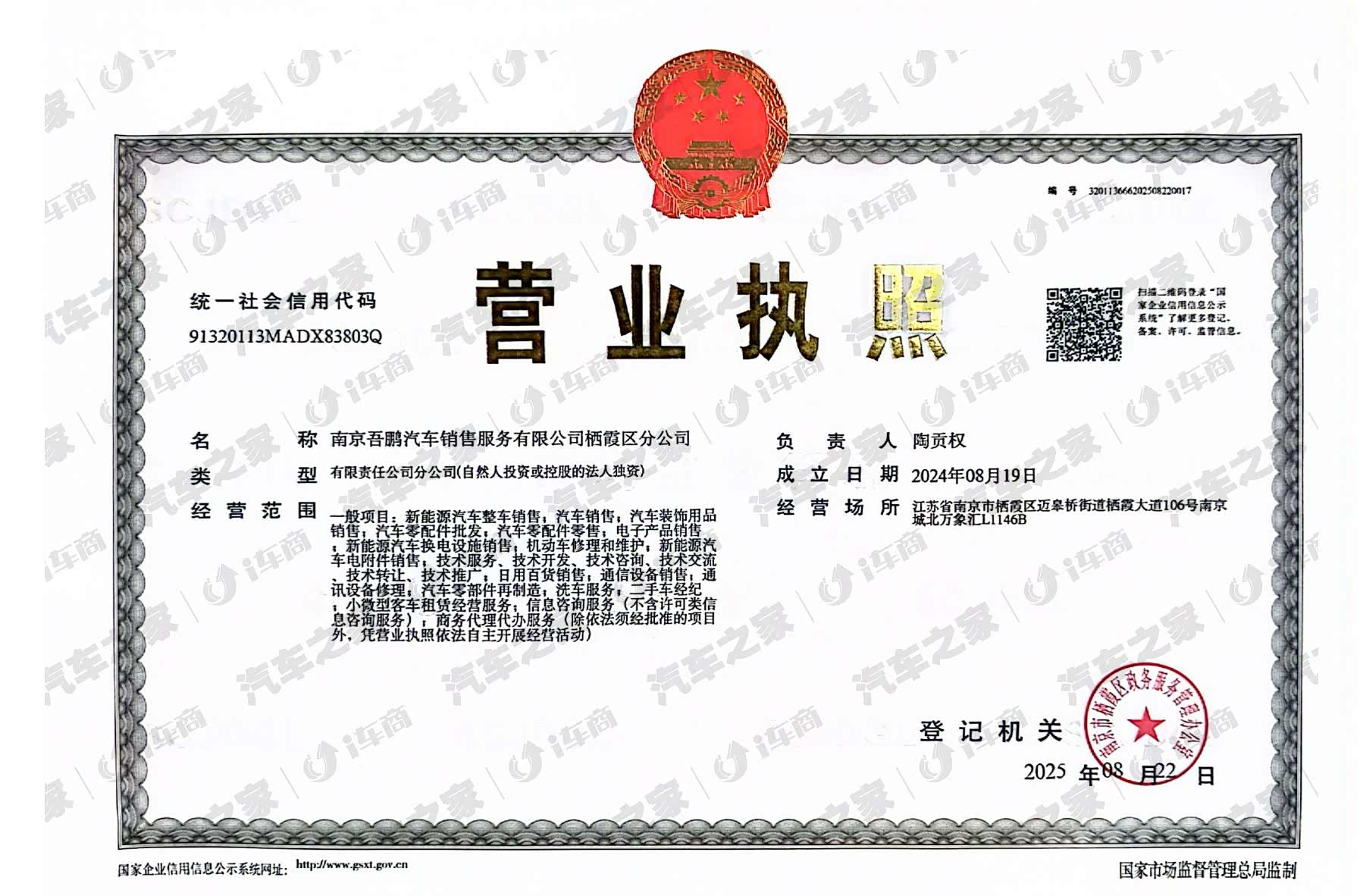 南京吾鹏汽车销售有限公司栖霞区分公司