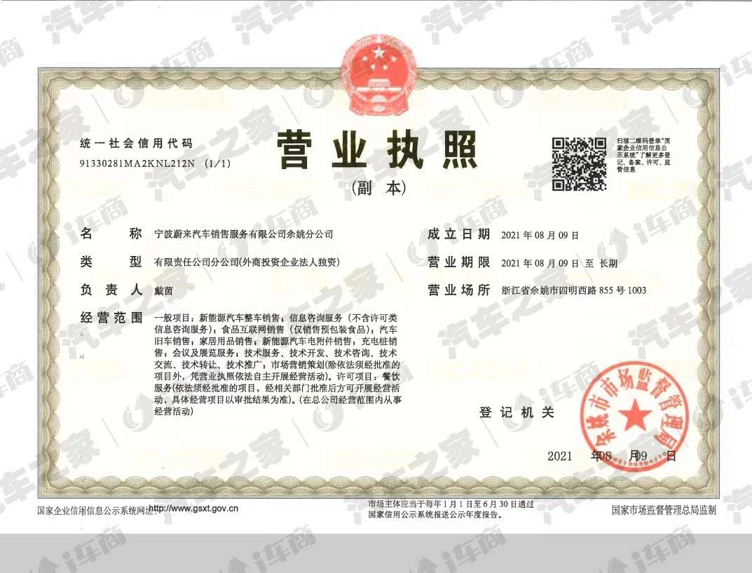 浙江省宁波市余姚市兰江街道四明西路855号余姚万达广场1003蔚来空间