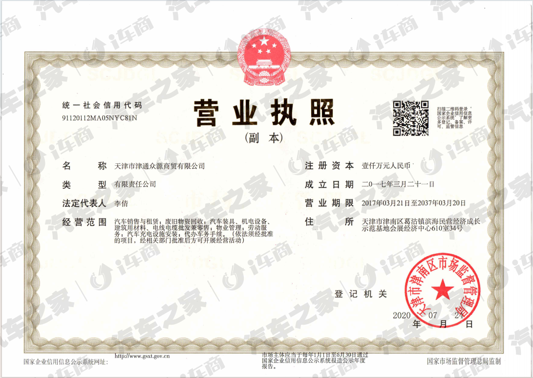 2.企业使命:津通众源商贸有限公司致力于推广新能源汽车,倡导绿色出行,以改善环境质量为已任,推动社会可持续发展。