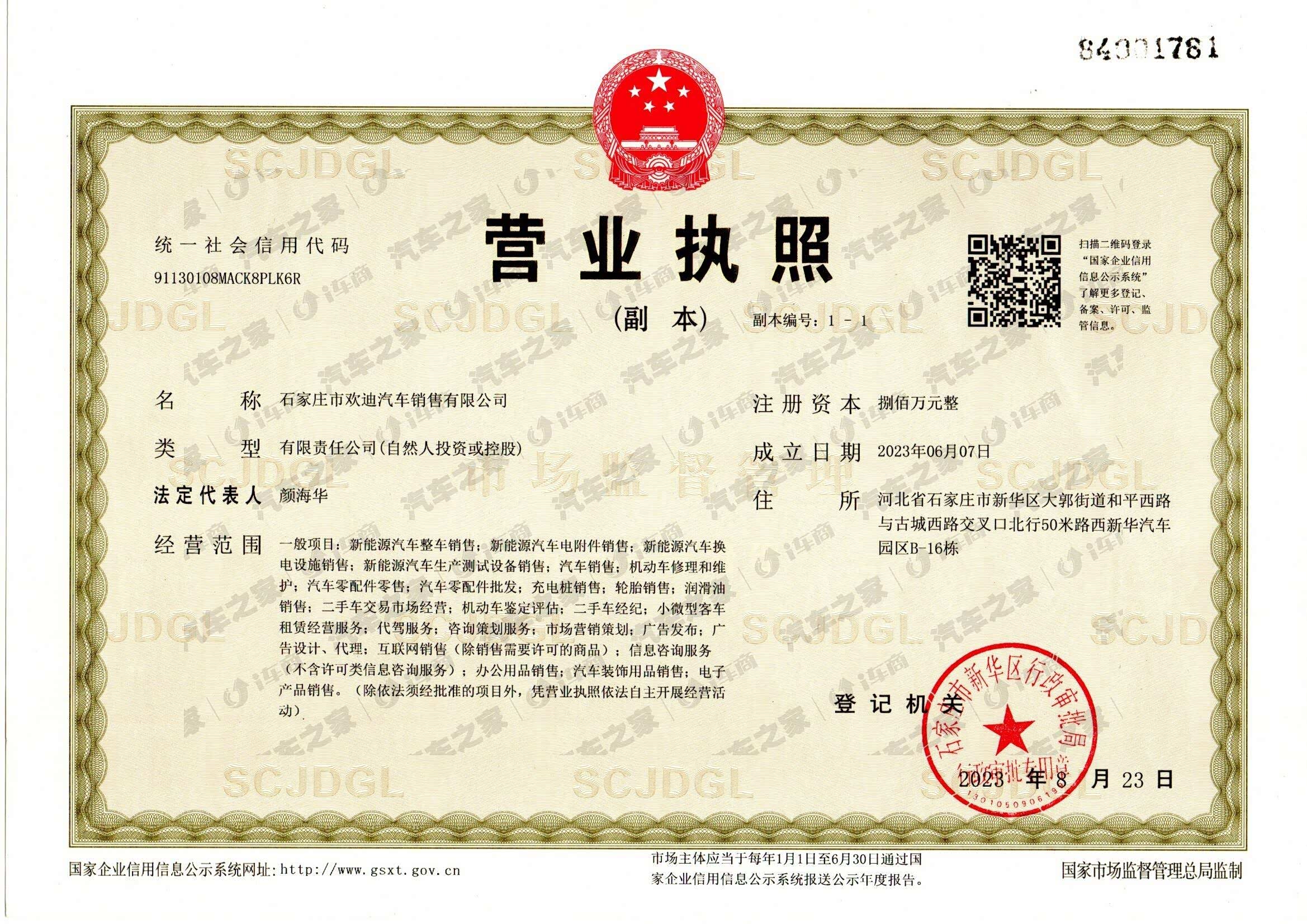 河北省石家庄市新华区大郭街道和平西路与古城西路交叉口北行50米路西新华汽车园区B-16栋