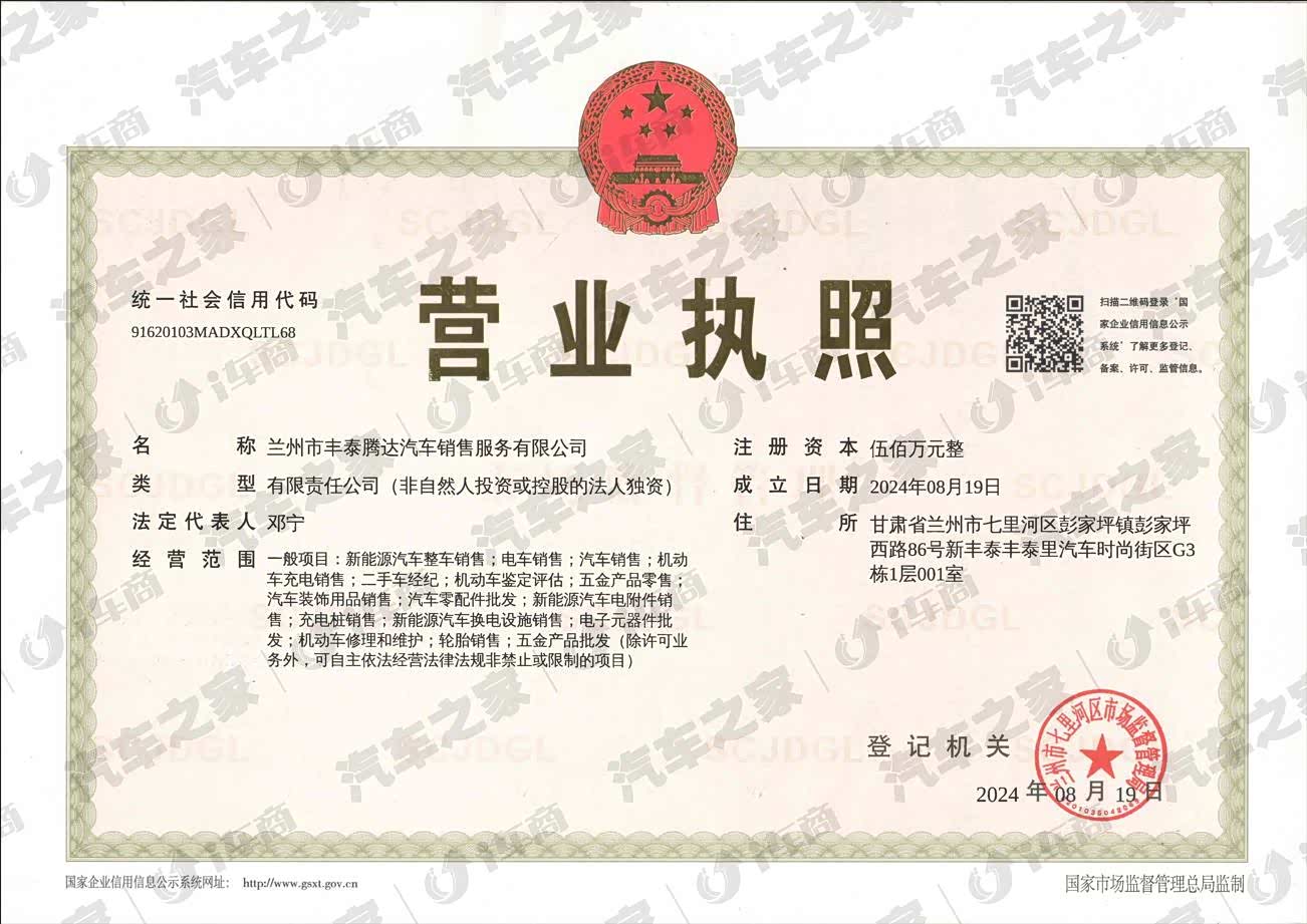 甘肃省兰州市七里河区彭家坪镇彭家坪西路86号新丰泰丰泰里汽车时尚街区G3栋1层001室