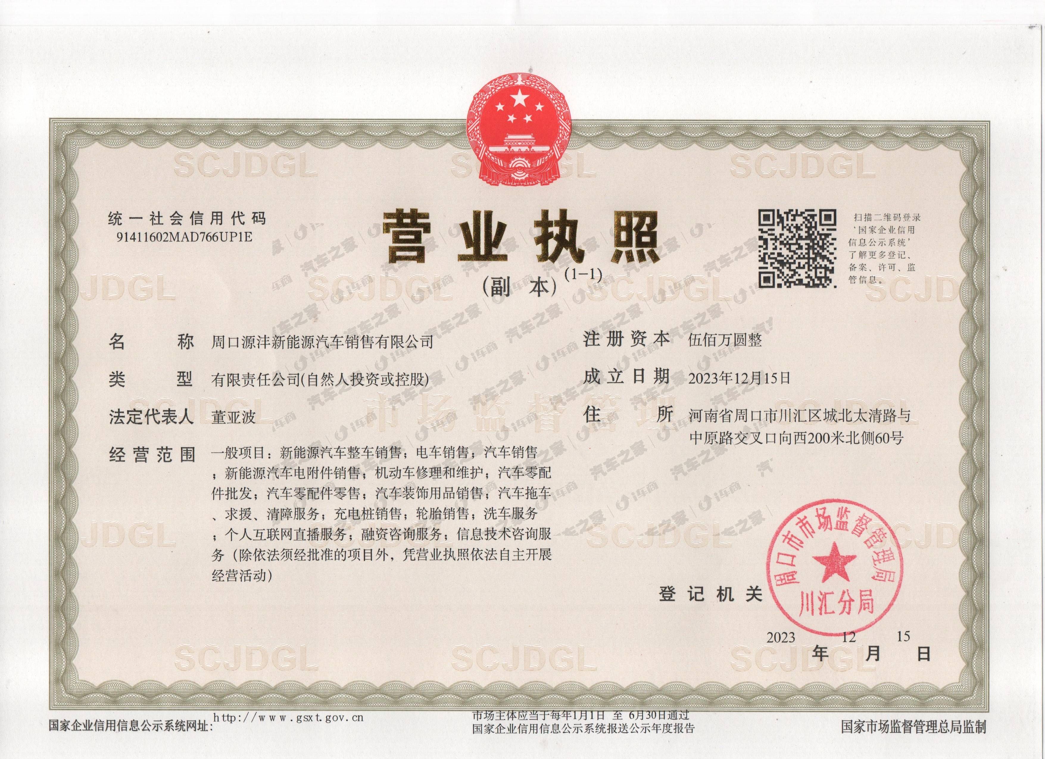 周口源沣新能源汽车销售有限公司
