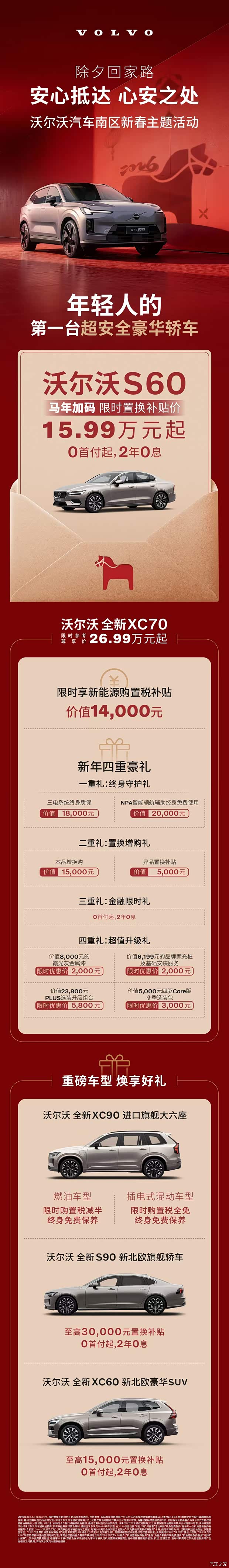 这个马年,让沃尔沃成为您的移动安全屋,把“安心”打包带回家。即日起至沃尔沃汽车南区各经销商店,开启您的新年安心之旅。