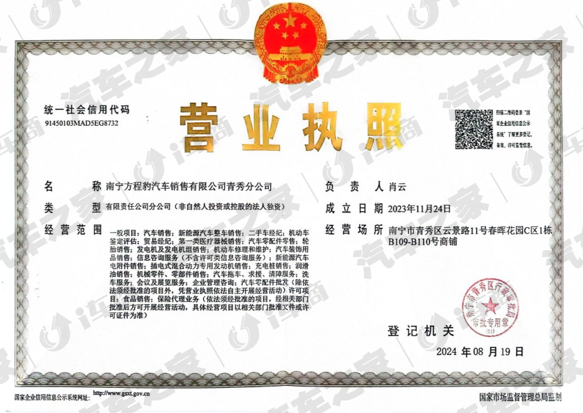 方程豹汽车南宁市厂家直营门店如下: