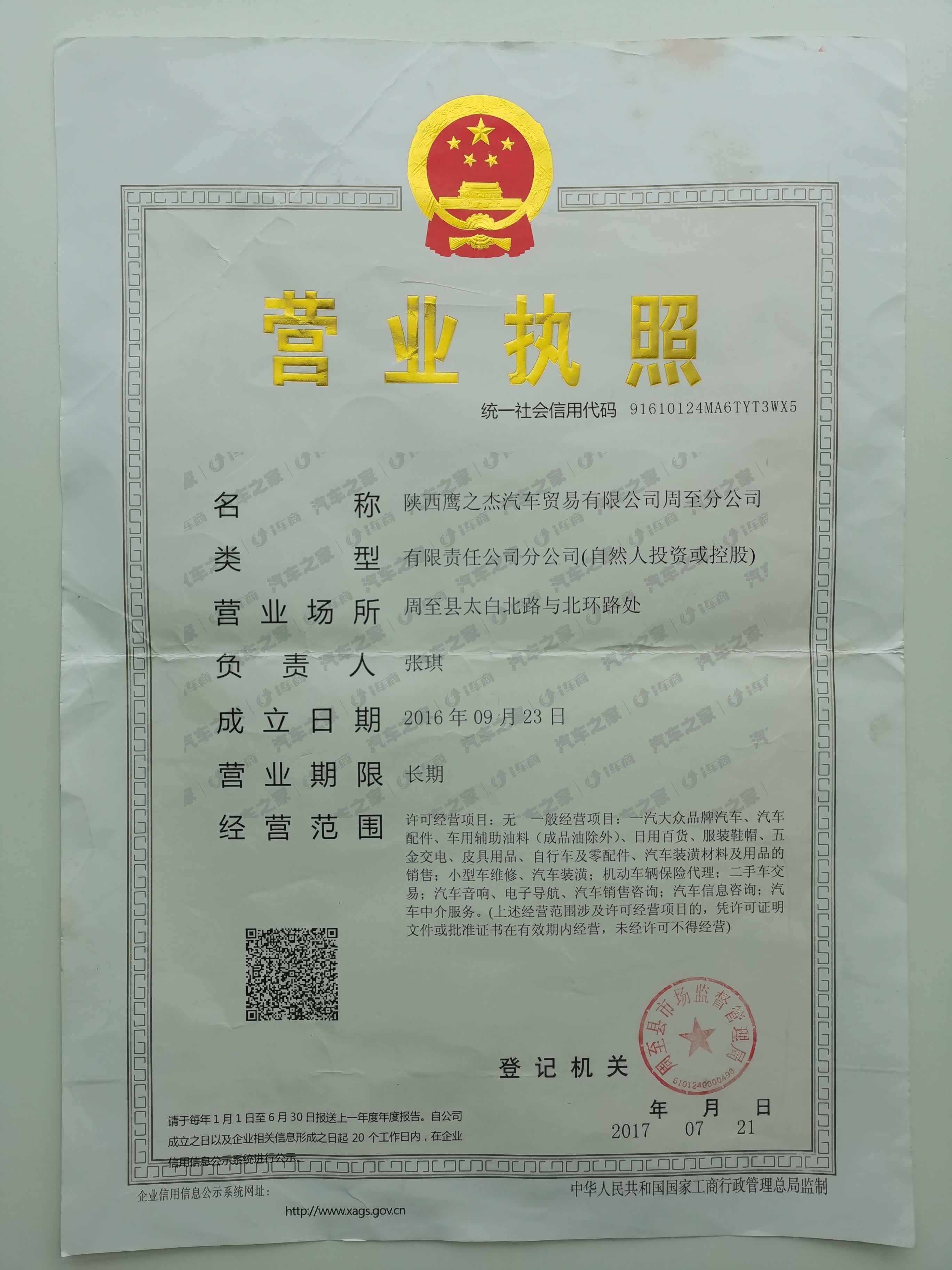 一汽-大众陕西鹰之杰汽车贸易有限公司周至分公司成立于2016年9月23日,主要为广大消费者提供一汽-大众汽车销售以及售后维修保养灯服务。成立以来一直秉持诚信经营,服务热情的服务宗旨,并连续多年荣获一汽大众厂家“五星级经销商”称号,在广大消费者心中也树立了良好的信誉和口碑。