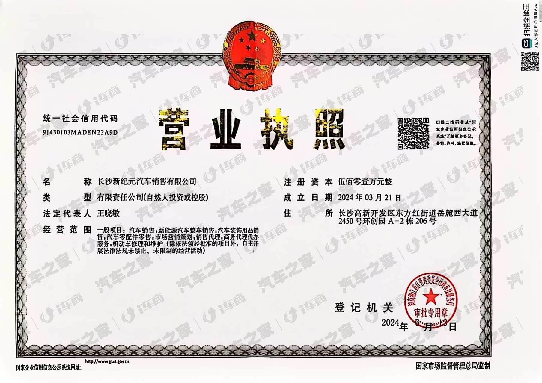 长沙市岳麓区嘉运路10号麓谷汽车世界E04栋长沙新纪元汽车销售有限公司