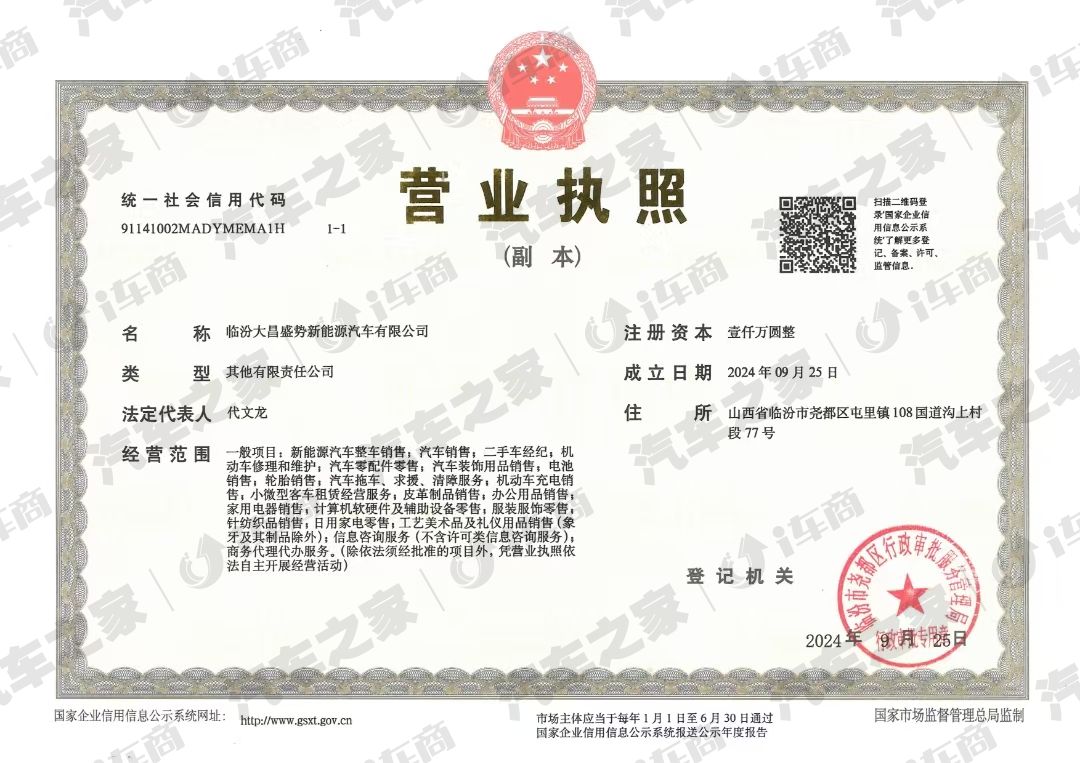 临汾大昌腾势中心隶属于山西大昌汽车集团,山西大昌汽车集团有限公司,始创于1983年,是一家以汽车销售、汽车维修为主业,融合网约车、租赁、金融保险、餐饮、酒店等新兴产业为一体的大型多元化现代化的服务业集团公司。目前,集团旗下拥有十二大汽贸园、52家子公司。成立40年来,集团始终践行“我们的努力,都是为社会服务”的公司使命,为数百万计用户提供卓越优质的服务,凭借雄厚的实力与业绩,成为山西汽车服务行业的龙头,享誉三晋大地,连续多年位居中国民营企业500强,中国服务业500强。
