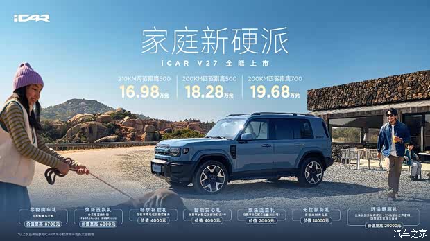 春日购车正当时,iCAR 为家庭用户带来诚意满满的出行选择,旗下 V23、V27 两款 “家庭新硬派” 车型,以硬核产品力搭配专属购车权益,为不同需求的消费者打造高价值购车方案。