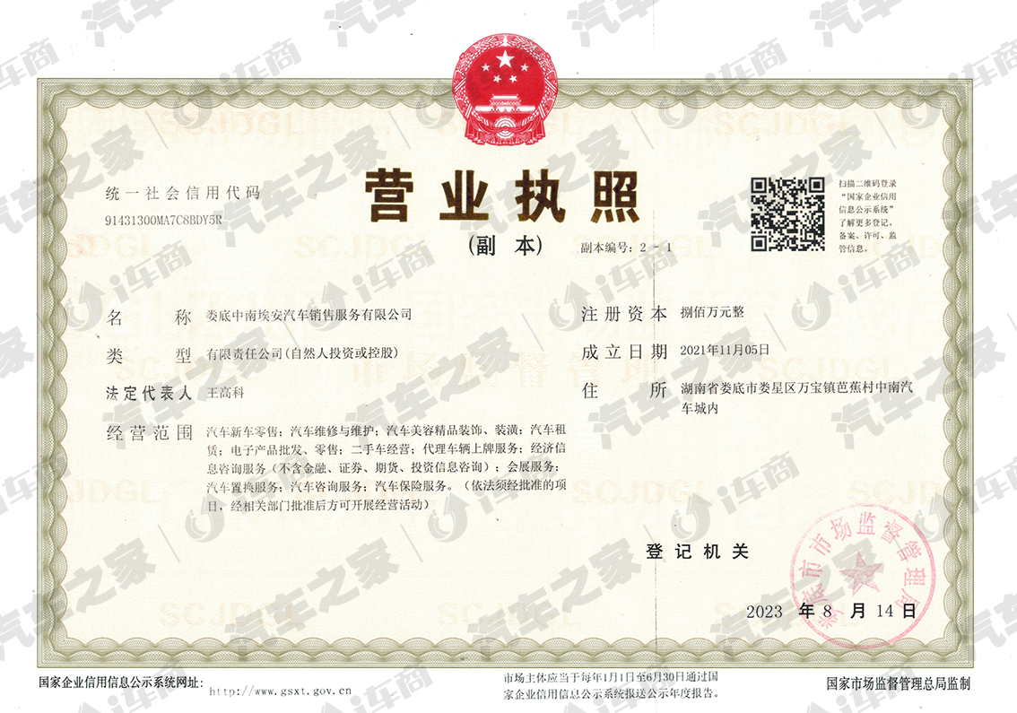 娄底中南埃安汽车销售服务有限公司