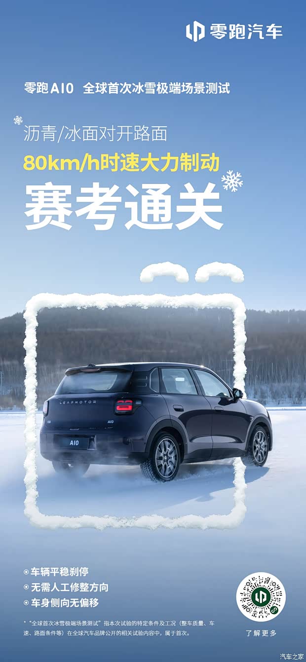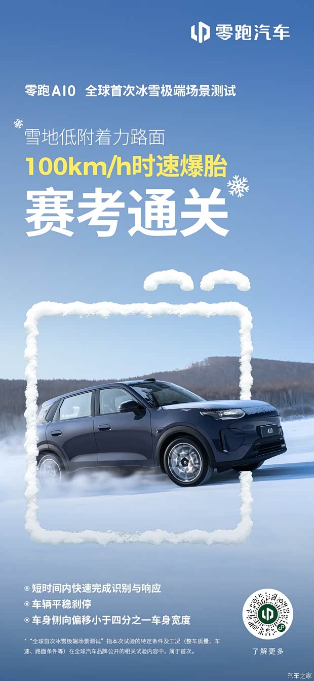 冰雪赛场的严苛考验,零跑A10能否稳稳拿下? ✅ 雪地低附着力路面,100km/h时速突发爆胎 迅速完成识别与响应,车辆平稳刹停 车身侧向偏移<1/4车身宽度,危险瞬间精准控局 ✅ 沥青/冰面对开路面,80km/h时速大力制动 车辆平稳刹停,车身侧向无偏移,复杂场景稳控在线 #零跑A10 搭载同级少有的爆胎稳定控制+底盘LMC运动融合控制 以过硬的全球品质,重新定义10万级纯电SUV安全标准 盲订进行时,99元即可锁定限时权益