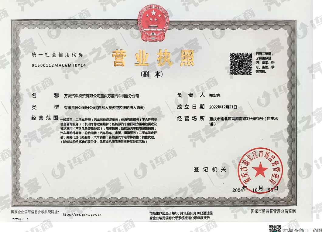 万友汽车投资有限公司重庆万福汽车销售分公司