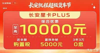 对于一直关注长安星卡PLUS的用户来说,趁长安凯程超级货车节,入手长安星卡PLUS,开上新车,今年生意顺风顺水,赚得盆满钵满!